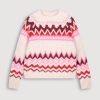 The MAGIC sweater bears its name: a soft and warm model, enhanced by a jacquard pattern in red and pink tones that brings a touch of fantasy. Knitted in a soft blend of alpaca and wool, it features a classic round neck, raglan shims and a natural mintled shade that is easy to combine. An essential full of character to illuminate cold days.