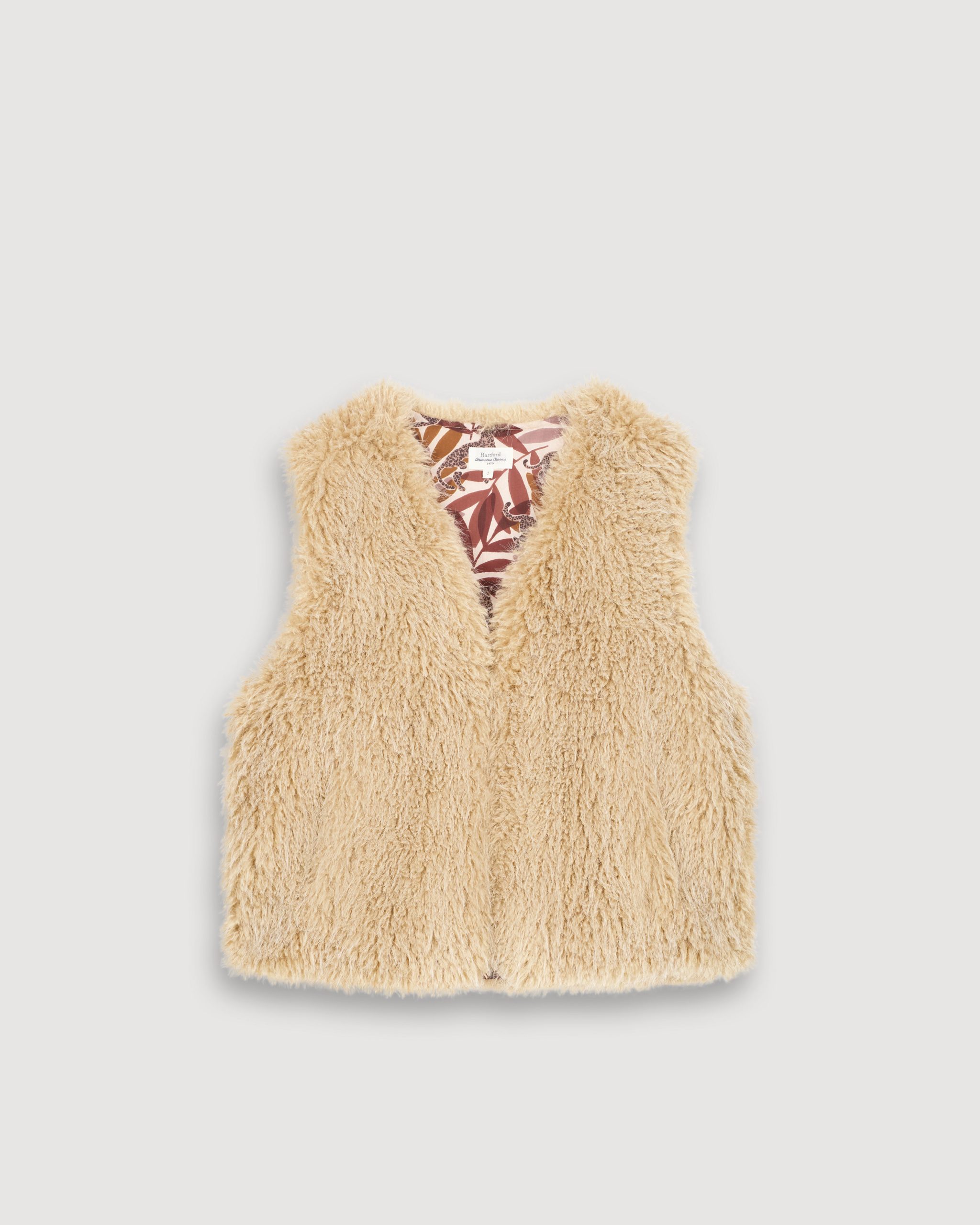 The sleeveless VOBBY vest combines style and softness with its smooth faux fur, ideal for bringing a warm and trendy touch to your outfits. Its straight cut is sublimated by a V-neckline and a practical three-hook closure. It can also be worn under a jacket or coat to keep warm.